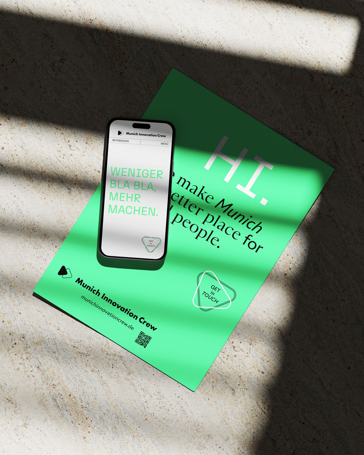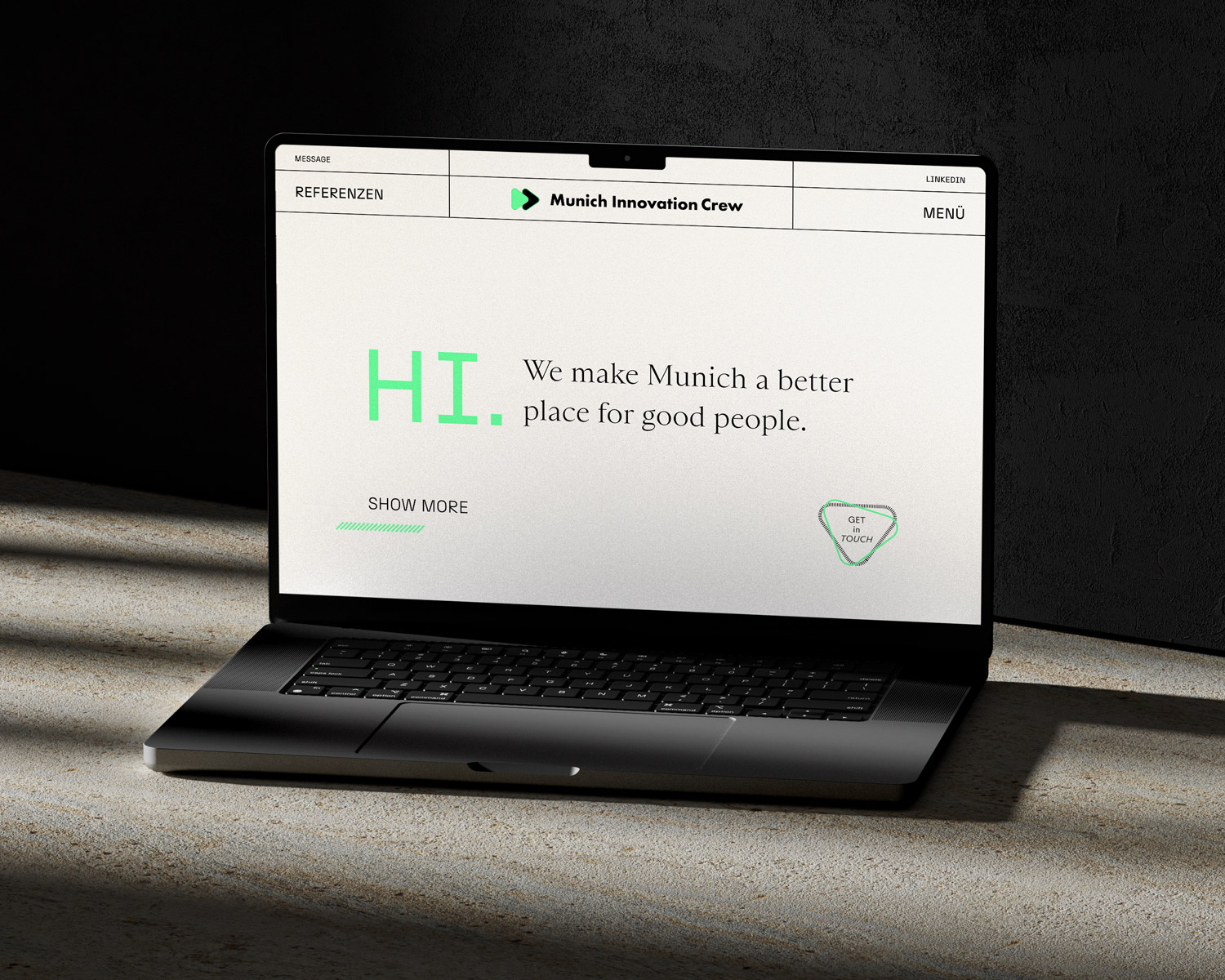 Für die Munich Innovation Crew realisierte Markwardt Design Studio ein modernes Webdesign sowie ein ergänzendes Plakatdesign. Das Projekt umfasste die Gestaltung und Umsetzung einer klar strukturierten Website sowie die Entwicklung von Printmedien in einer reduzierten Farbwelt aus Schwarz, Weiß und Neongrün.